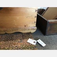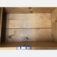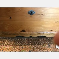 Construction was English. Most chests have a candle drawer or document compartment. Many have bracketed feet and dovetail construction. The hinged lid have mortised chest locks, strike plate and key holes. This was to protect valuables, ammunition, money and documents.